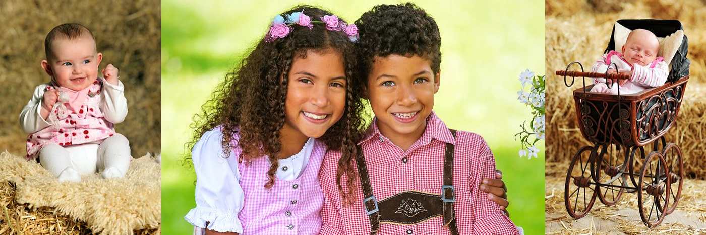 4. Variationen: Einzelportraits, Bilder mit Eltern und Geschwistern.